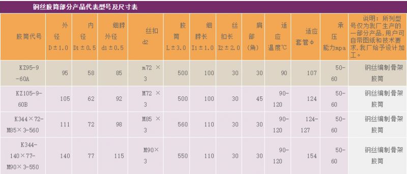我廠研制的專利產(chǎn)品“鋼絲膠筒”,在油田小套管變形井、高溫井中試驗,耐溫90~120℃,承壓50~60Mpa,取得了明顯的效果,并獲“具有鋼絲繩骨架的油井封隔器膠筒”國家專利。